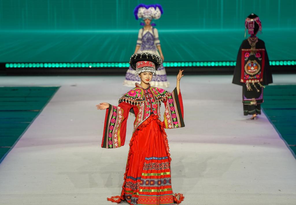 模特身着民族时装在T台上走秀。新华社记者彭奕凯摄