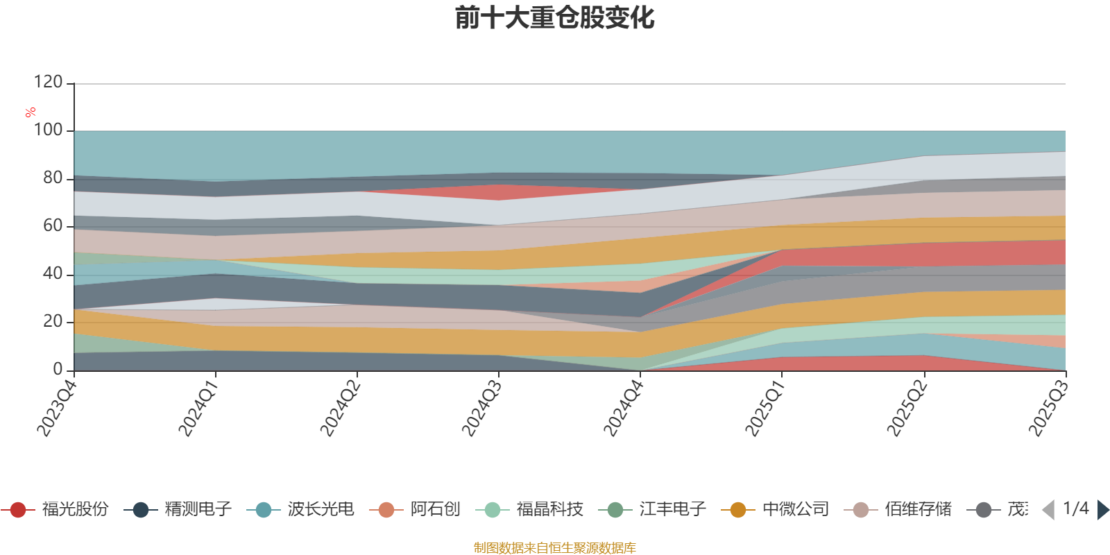 该基金持股集中度较高,近2年前十大重仓股集中度长期超过60%。截至2025年三季度末,基金十大重仓股分别是芯源微、茂莱光学、中微公司、拓荆科技、汇成真空、中科飞测、波长光电、福晶科技、奥普光电、阿石创。
