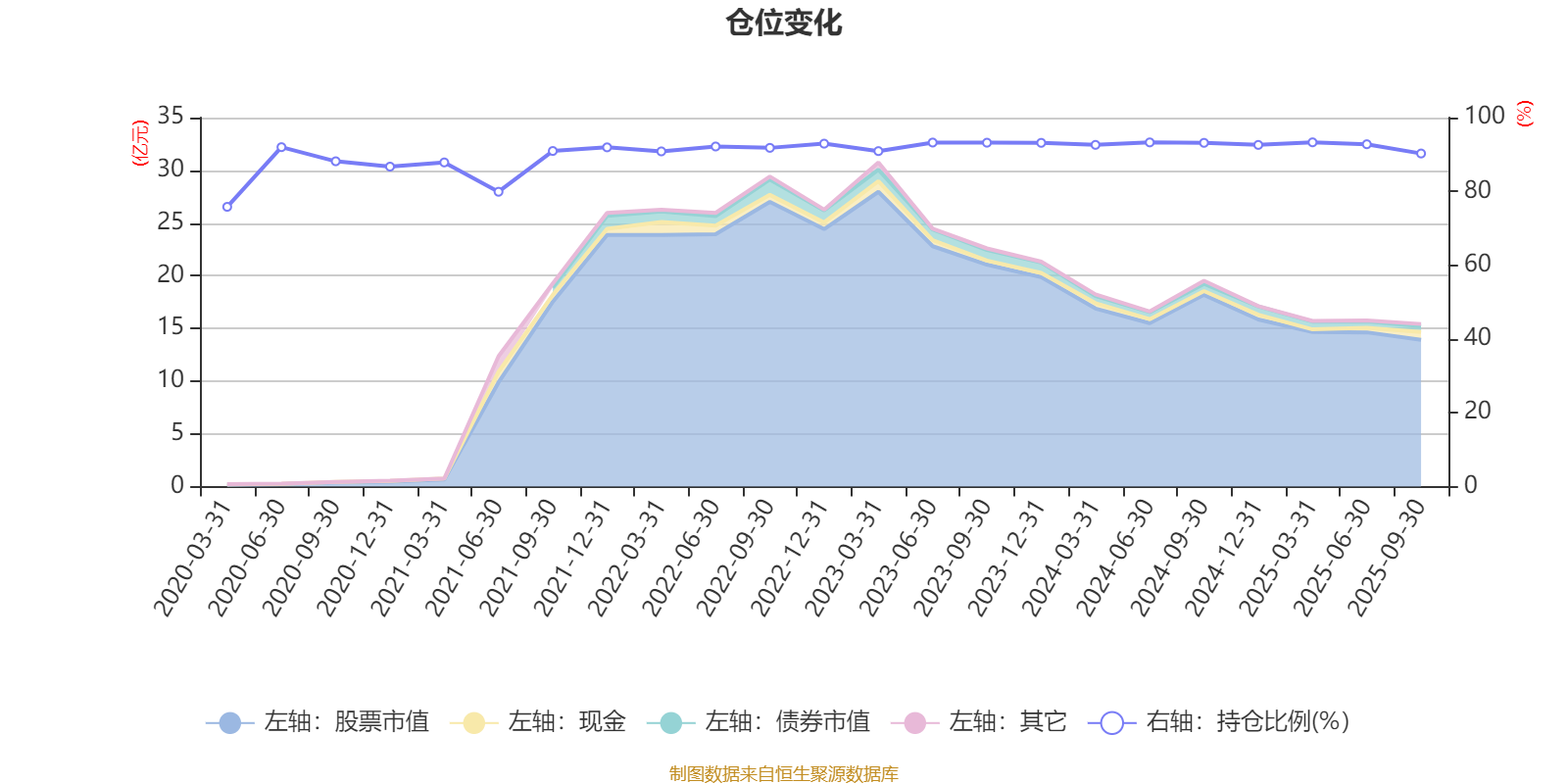 据定期报告数据统计,近三年平均股票仓位为92.62%,同类平均为72.12%。2025年一季度末基金达到93.3%的最高仓位,2020年一季度末最低,为75.81%。