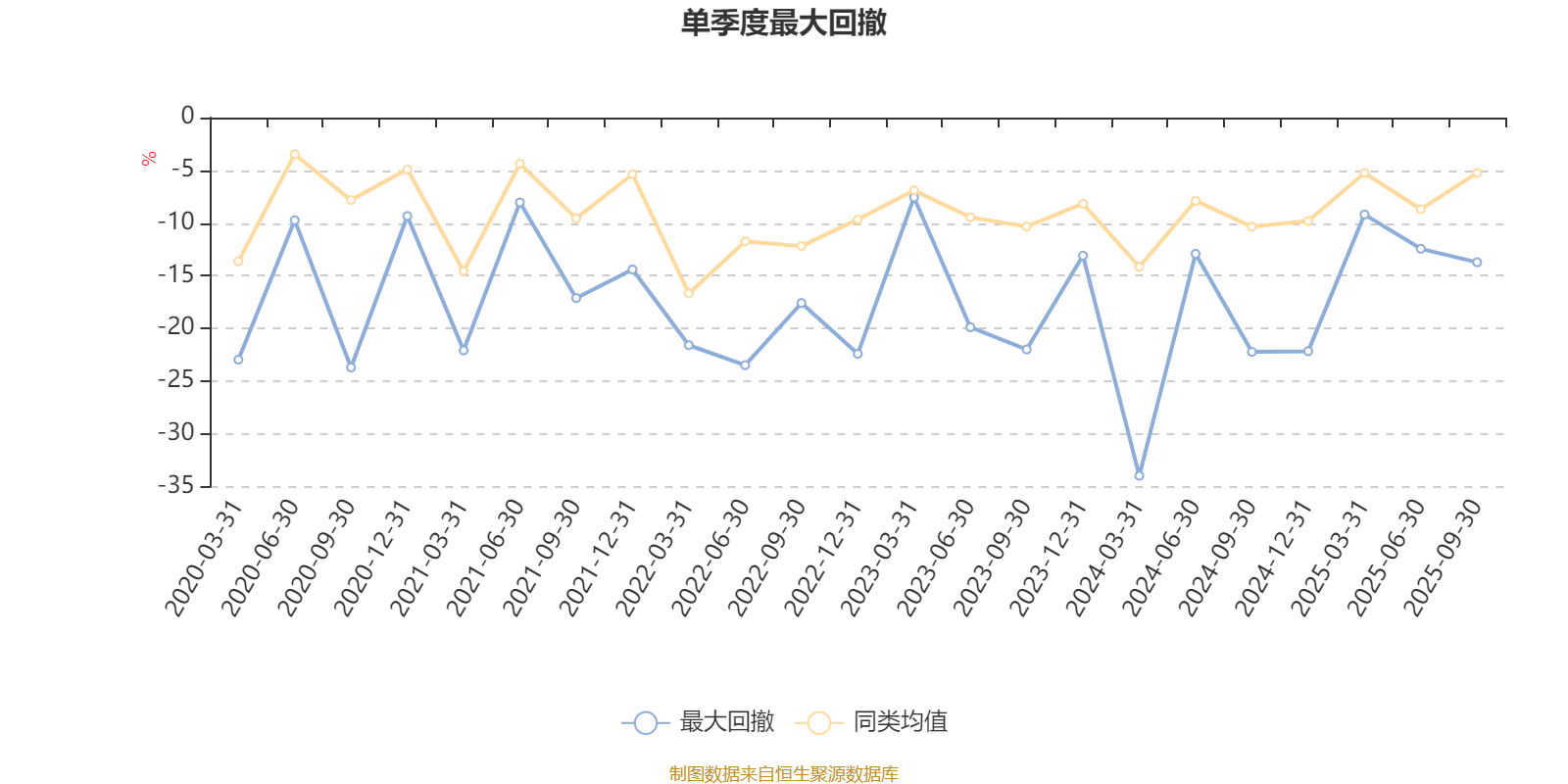 截至10月17日,基金近三年最大回撤为51.35%,同类可比基金排名1216/1285。单季度最大回撤出现在2024年一季度,为33.97%。