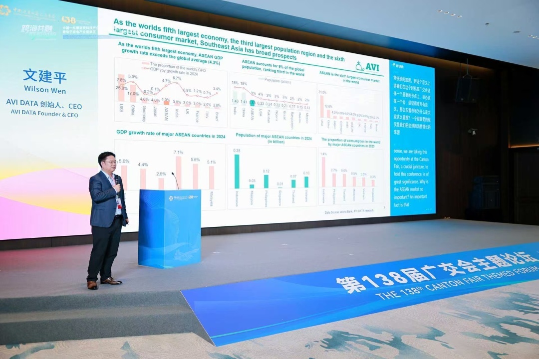 在东盟消费科技市场发展趋势发布环节,AVI DATA创始人、CEO文建平发布了《东南亚家电市场:战略机会驱使下的百花齐放和百家争鸣》的深度报告。报告基于翔实的数据与深入的市场调研,系统梳理了东盟各国在智能手机、智能家居、消费电子等领域的市场容量、增长动力与消费行为变化。文建平指出,东盟地区人口结构年轻化、数字化进程加快、富裕人群增长,为消费科技产业提供了广阔的市场空间。同时,随着绿色、智能、健康等消费理念的普及,具备创新功能与高性价比的中国电子家电产品在东盟市场的认可度不断提升。据悉,AVI DATA通过其专业的数据分析能力与行业洞察,为企业提供市场进入策略、产品定位及渠道优化建议,助力企业精准把握东盟市场机遇。