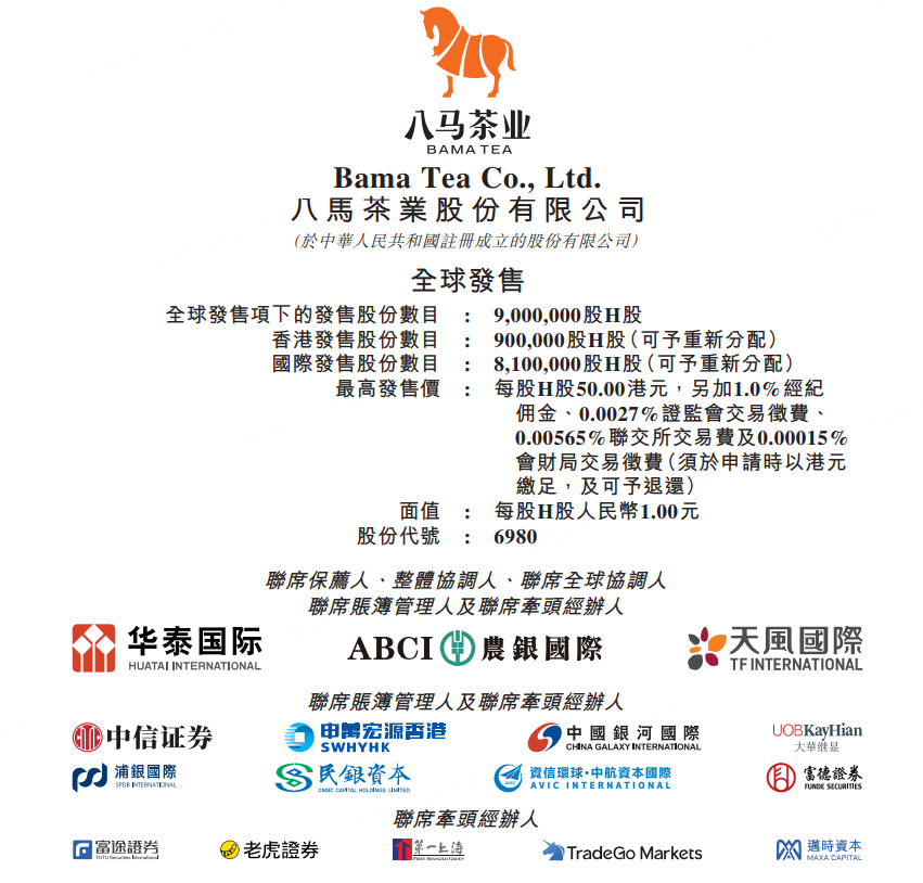 10月20日,八马茶业发布公告,于10月20日-10月23日招股,公司拟全球发售约900万股股份,预期将于10月28日上市。