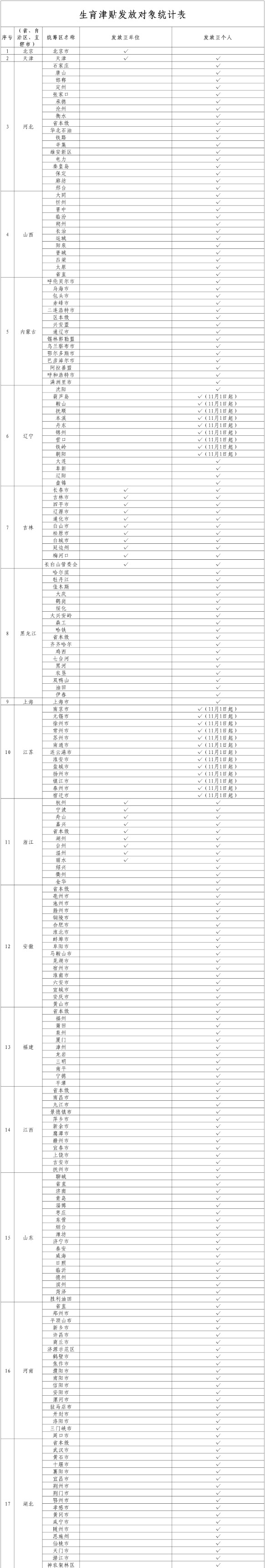 各统筹区生育津贴发放的具体情况,请参见下表。