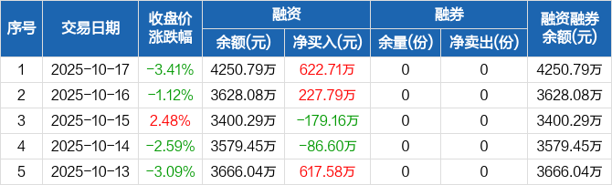 港股科技50ETF:融资净买入622.71万元,融资余额4250.79万元(10-17)