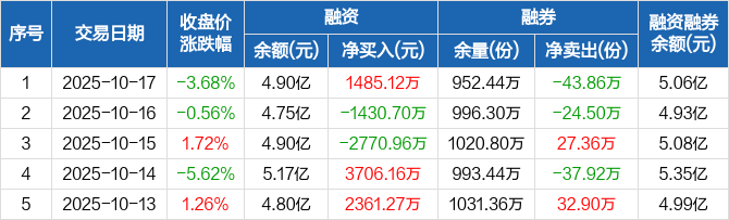 芯片ETF:融资净买入1485.12万元,融资余额4.9亿元(10-17)