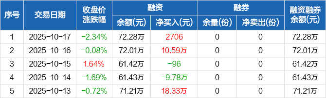 中证A500ETF天弘:融资净买入2706元,融资余额72.28万元(10-17)