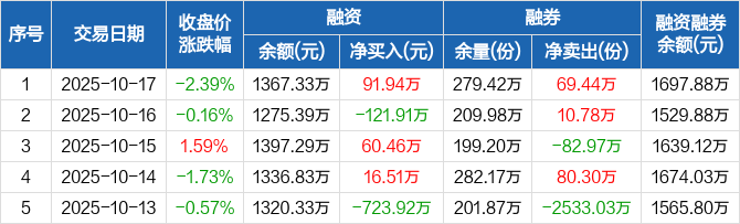 A500ETF南方:融资净买入91.94万元,融资余额1367.33万元(10-17)