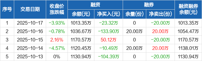 信息技术ETF:融资净偿还23.32万元,融资余额1013.35万元(10-17)