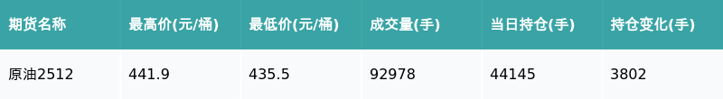 南财智讯10月20日电,南财金融终端盘后期货数据显示,上期能源的原油主力合约收跌0.86%,收盘报435.8元/桶,日内资金流入3.72亿元。其他相关指标见下表: