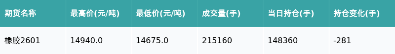 南财智讯10月20日电,南财金融终端盘后期货数据显示,上海期货交易所的橡胶主力合约收跌0.07%,收盘报14810.0元/吨,日内资金流入2327.78万元。其他相关指标见下表: