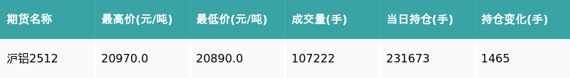 南财智讯10月20日电,南财金融终端盘后期货数据显示,上海期货交易所的沪铝主力合约收跌0.38%,收盘报20910.0元/吨,日内资金流入2756.98万元。其他相关指标见下表: