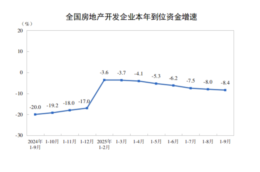 10月20日,国家统计局发布2025年1-9月份全国房地产市场基本情况。数据显示,当前市场销售端仍处调整态势,但供给端新开工、竣工降幅均收窄。