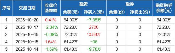 中证A500ETF天弘:融资净偿还7.38万元,融资余额64.9万元(10-20)