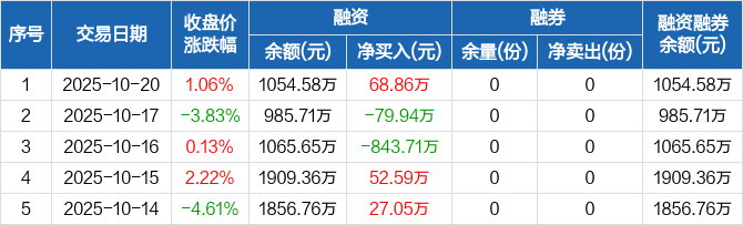 新能源车ETF:融资净买入68.86万元,融资余额1054.58万元(10-20)
