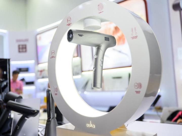 在广交会现场,东井电器将女性用户日常使用的吹风机、卷发棒等妆发产品做到功能与颜值并重。受访单位供图