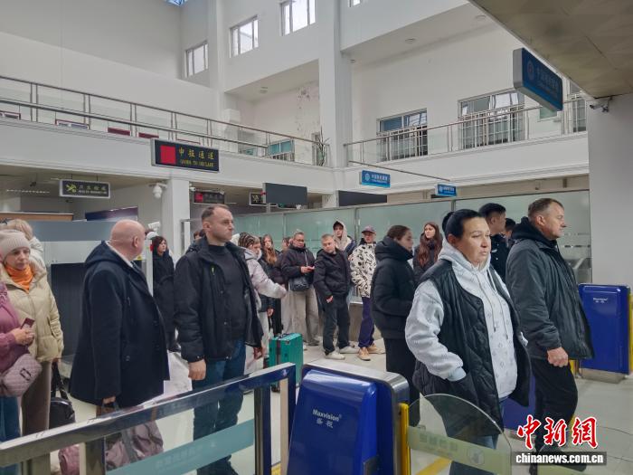 俄罗斯籍旅客在饶河口岸排队等待通关。王克勤摄