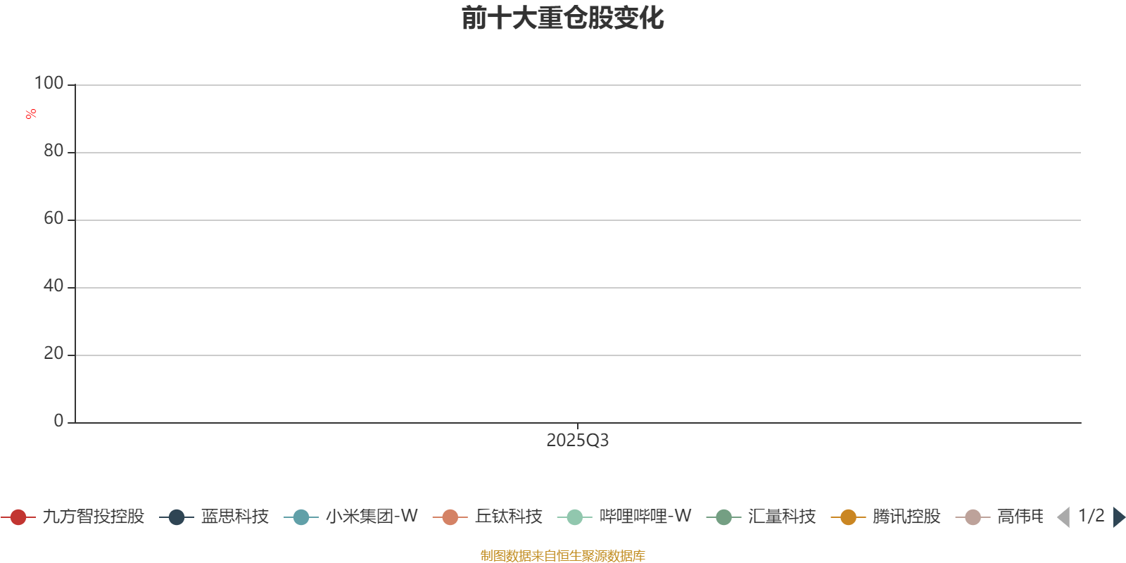 该基金持股集中度较高。截至2025年三季度末,基金十大重仓股分别是哔哩哔哩-W、高伟电子、腾讯控股、汇量科技、阿里巴巴-W、九方智投控股、蓝思科技、第四范式、丘钛科技、小米集团-W。