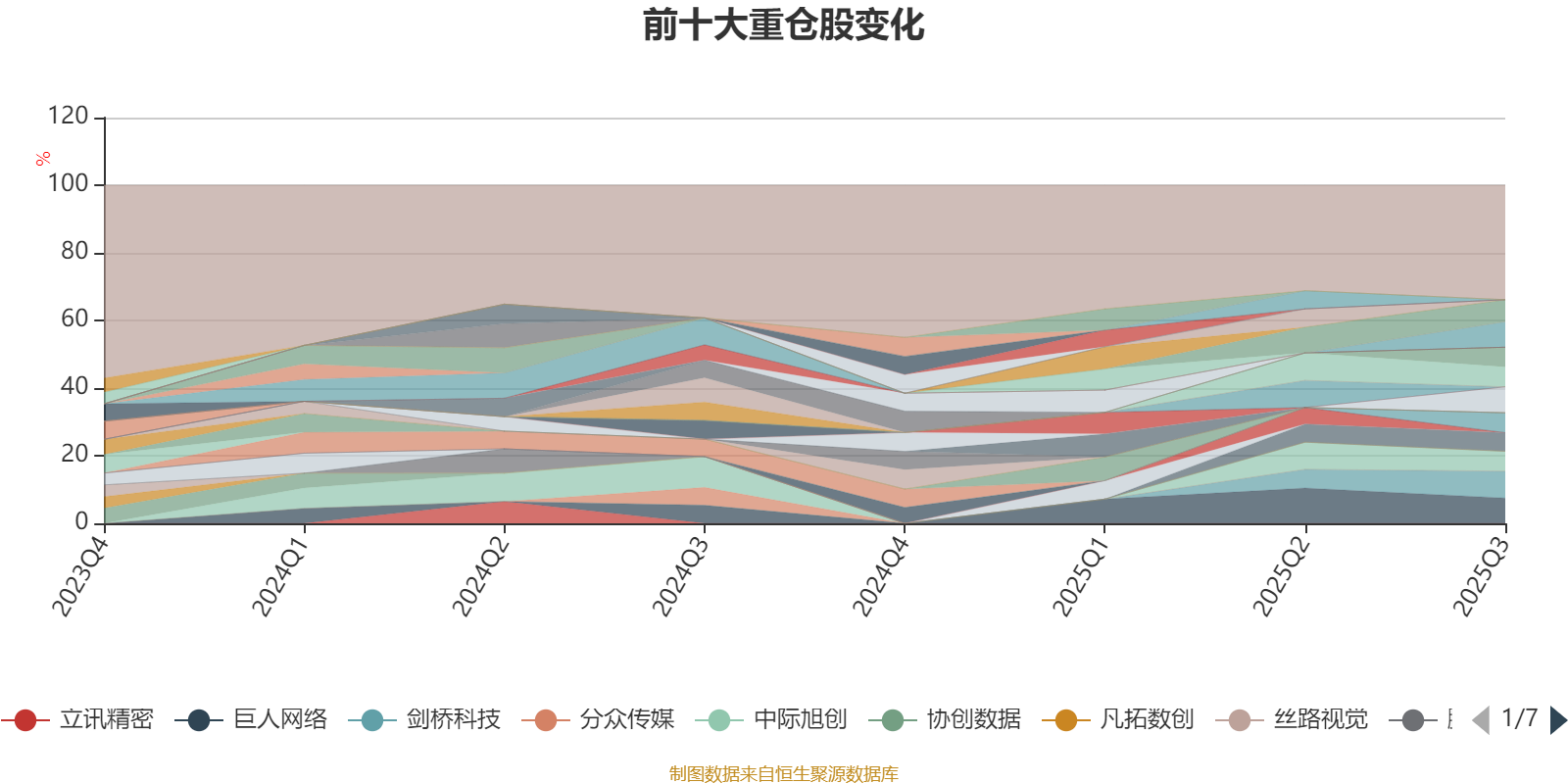 截至2025年三季度末,基金十大重仓股分别是剑桥科技、寒武纪、工业富联、巨人网络、新易盛、中际旭创、芯原股份、源杰科技、英维克、华工科技。