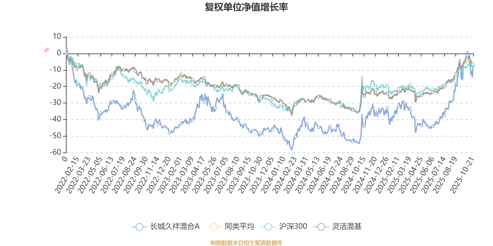 截至10月21日,长城久祥混合A近三个月复权单位净值增长率为38.26%,位于同类可比基金61/1287;近半年复权单位净值增长率为60.43%,位于同类可比基金70/1287;近一年复权单位净值增长率为49.61%,位于同类可比基金133/1287;近三年复权单位净值增长率为65.32%,位于同类可比基金56/1286。