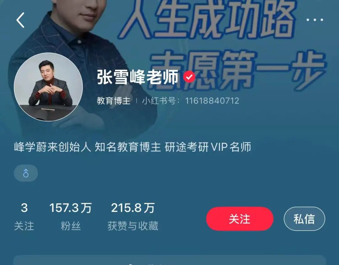此前,9月24日,知名高考志愿导师张雪峰的微博、抖音、快手、B站及小红书平台的社交账号出现异常,被禁止关注。这五个平台账号的粉丝合计超过6500万。据《正在新闻》报道,张雪峰(本名张子彪)向其表示,“禁止关注是账号问题”,随后便挂断了电话。