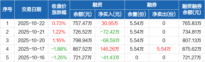 家电ETF:融资净买入30.95万元,融资余额757.47万元(10-22)