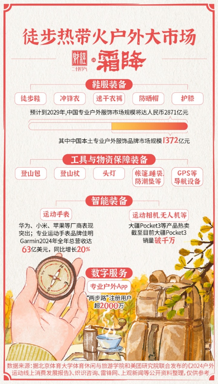 霜降时节,徒步登高的脚步不仅丈量了山野,也带动着户外经济节节攀“高”。我们也期待着徒步市场在规范引导下良性发展,让脚步走得更远,风景更长。