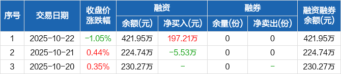 航空航天ETF:融资净买入197.21万元,融资余额421.95万元(10-22)