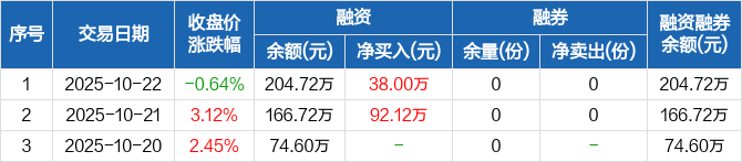创业板50ETF嘉实:融资净买入38万元,融资余额204.72万元(10-22)
