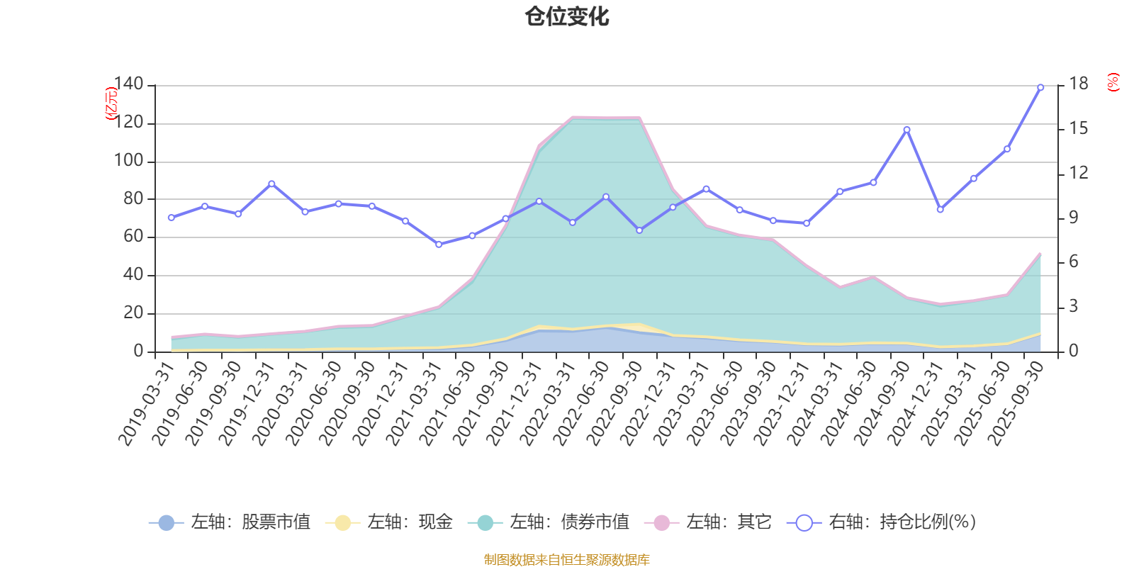 据定期报告数据统计,近三年平均股票仓位为11.5%,同类平均为72.12%。2025年三季度末基金达到17.84%的最高仓位,2021年一季度末最低,为7.25%。