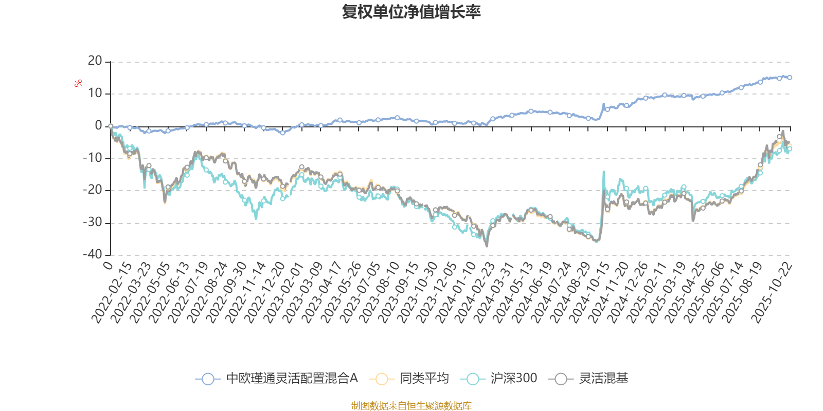 截至10月22日,中欧瑾通灵活配置混合A近三个月复权单位净值增长率为1.90%,位于同类可比基金1068/1287;近半年复权单位净值增长率为5.26%,位于同类可比基金1108/1287;近一年复权单位净值增长率为8.54%,位于同类可比基金955/1287;近三年复权单位净值增长率为14.95%,位于同类可比基金545/1286。