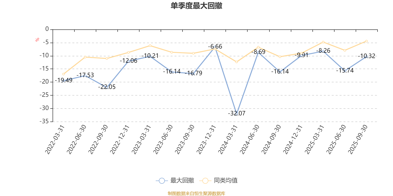 截至10月22日,基金近三年最大回撤为39.95%,同类可比基金排名94/117。单季度最大回撤出现在2024年一季度,为32.07%。