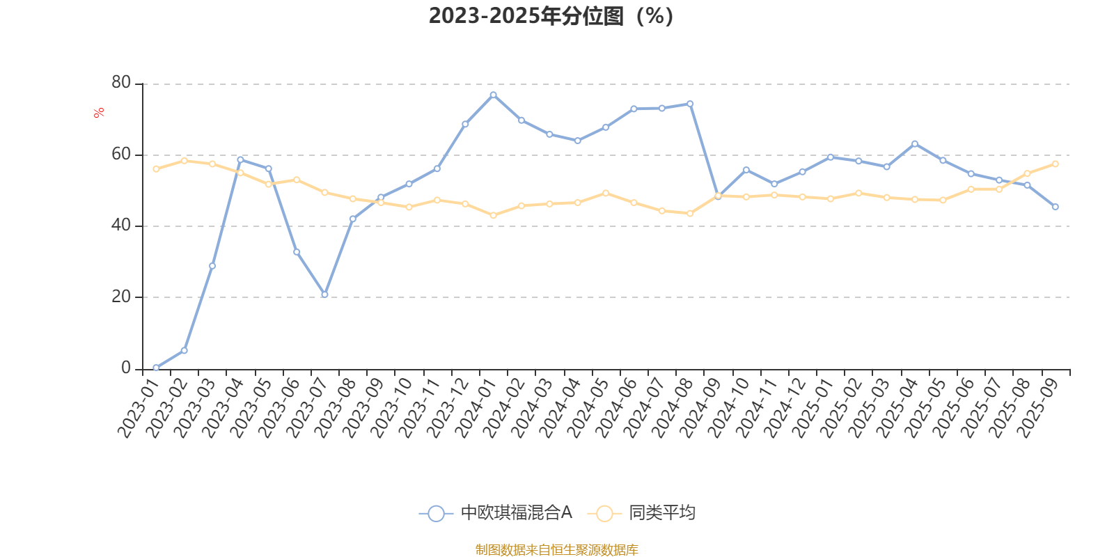 通过所选区间该基金净值增长率分位图,可以观察该基金与同类基金业绩比较情况。图为坐标原点到区间内某时点的净值增长率在同类基金中的分位数。