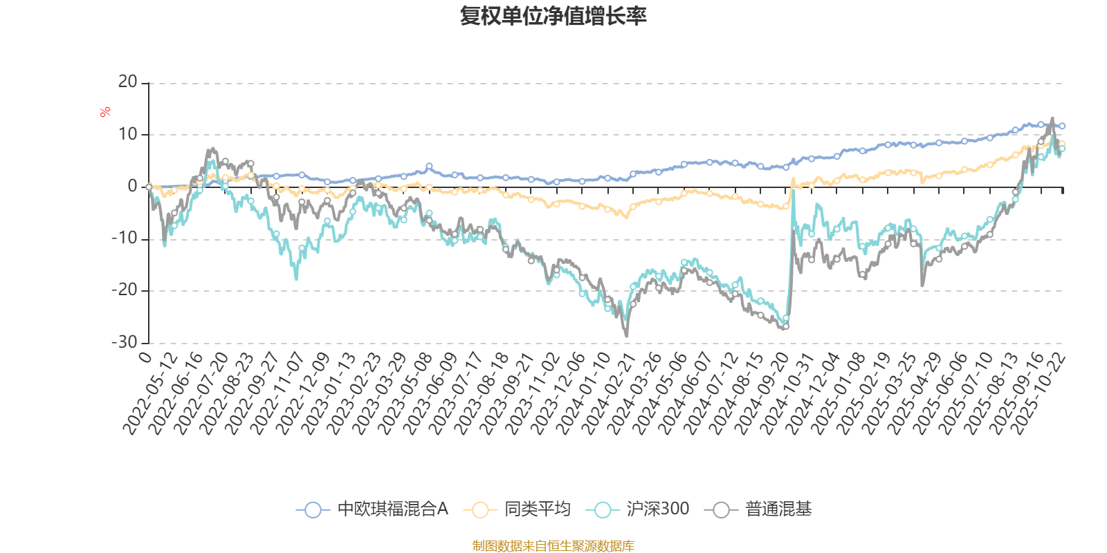 截至10月22日,中欧琪福混合A近三个月复权单位净值增长率为1.48%,位于同类可比基金378/629;近半年复权单位净值增长率为3.08%,位于同类可比基金471/629;近一年复权单位净值增长率为5.78%,位于同类可比基金373/623;近三年复权单位净值增长率为9.22%,位于同类可比基金331/556。