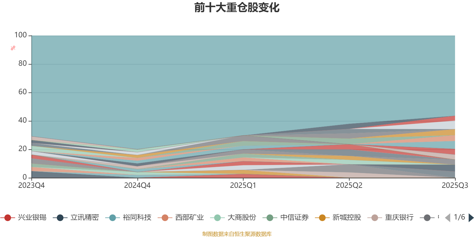 截至2025年三季度末,基金十大重仓股分别是华友钴业、阿里巴巴-W、腾讯控股、申万宏源、山东黄金、杭州银行、恒隆地产、中国黄金国际、中芯国际、新安股份。