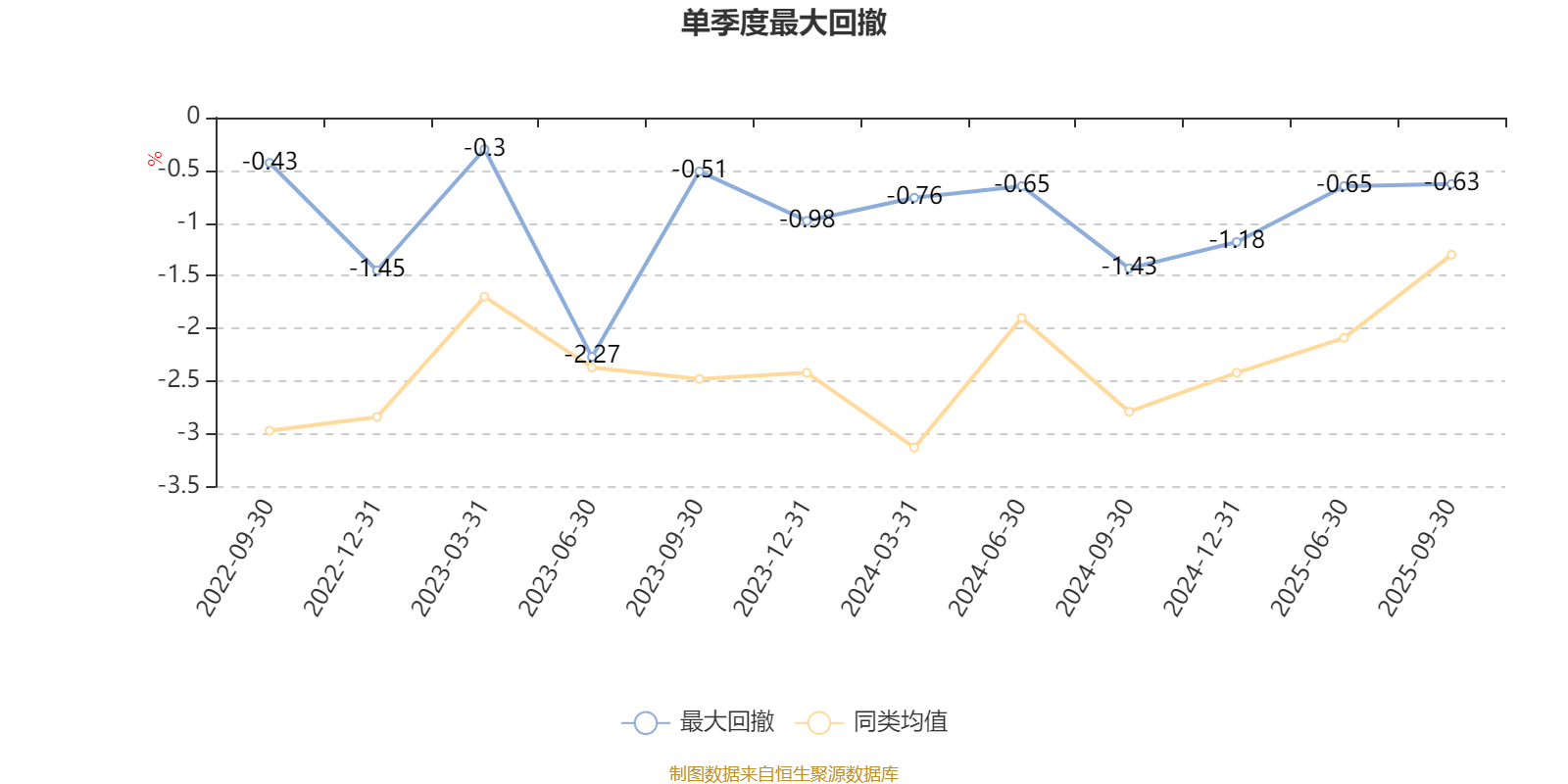 截至10月22日,基金近三年最大回撤为3.32%,同类可比基金排名77/534。单季度最大回撤出现在2023年二季度,为2.27%。
