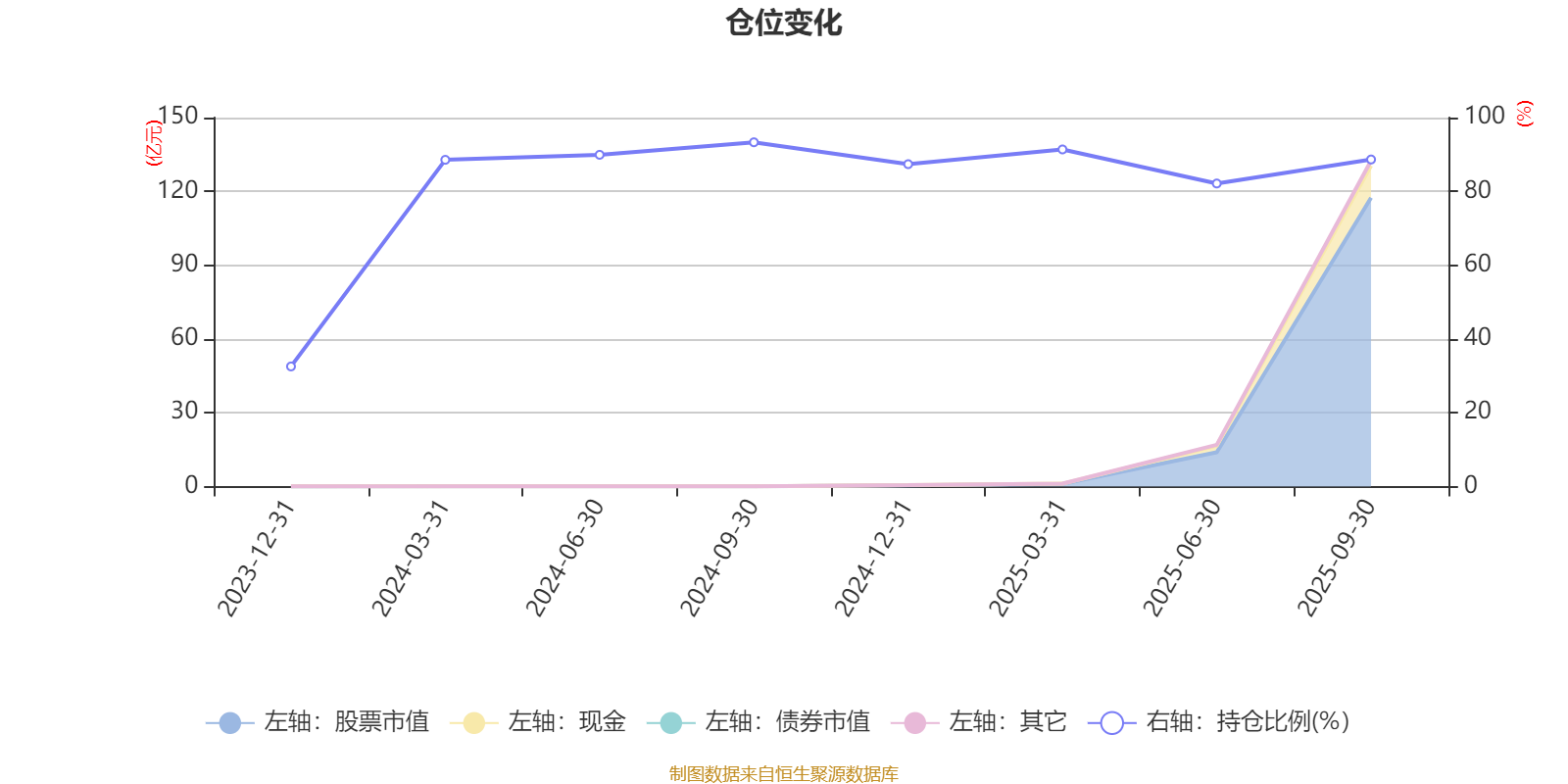 据定期报告数据统计,成立以来平均股票仓位为81.74%,同类平均为86.69%。2024年三季度末基金达到93.31%的最高仓位,2023年末最低,为32.56%。