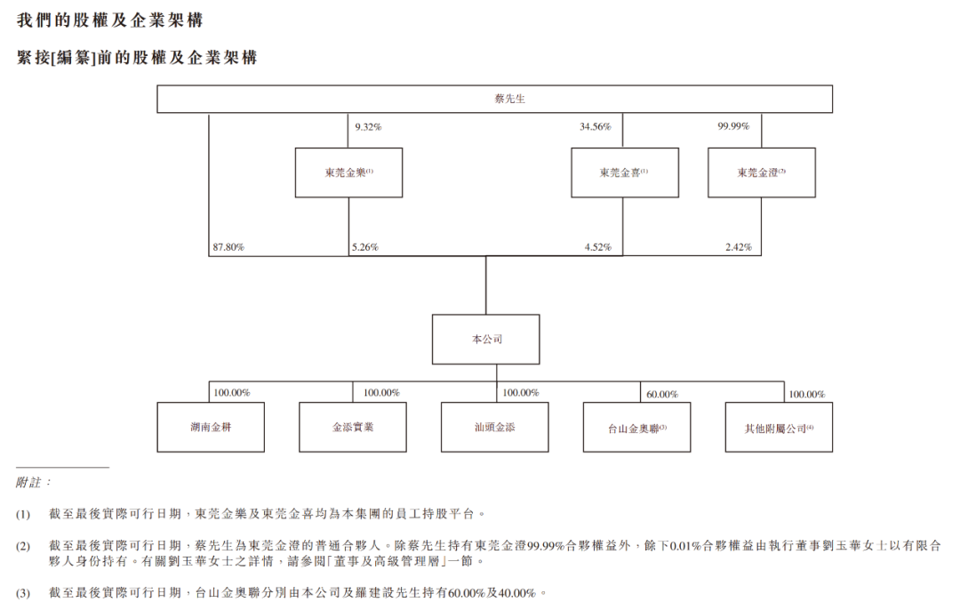 从招股书来看,截至最后实际可行日期,金添动漫共有4名股东,蔡建淳直接持有87.80%股份,东莞金乐和东莞金喜为员工持股平台,东莞金澄为蔡建淳所控制的平台。