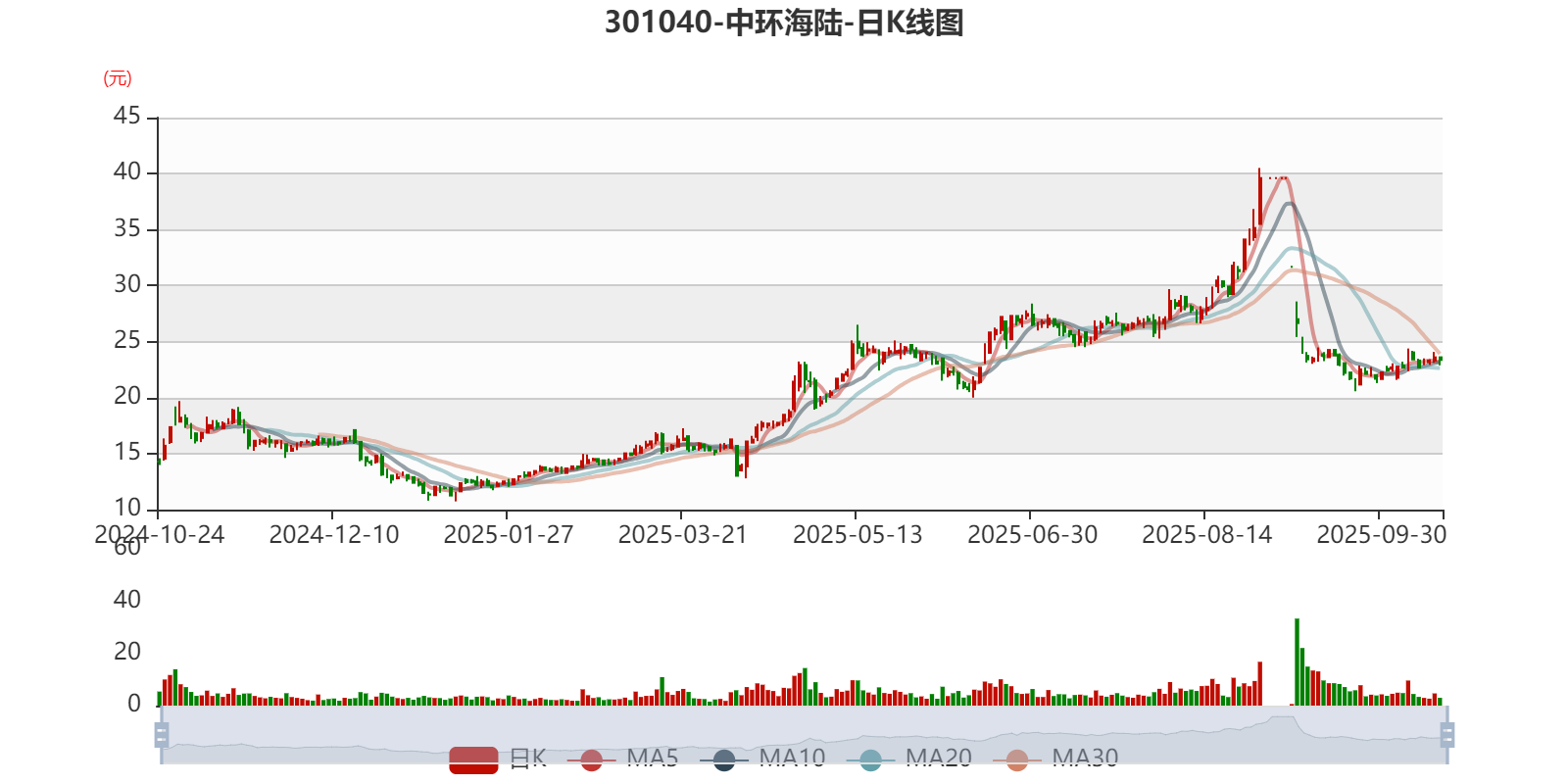 以10月23日收盘价计算,中环海陆目前市盈率(TTM)约为-15.33倍,市净率(LF)约2.85倍,市销率(TTM)约3.38倍。