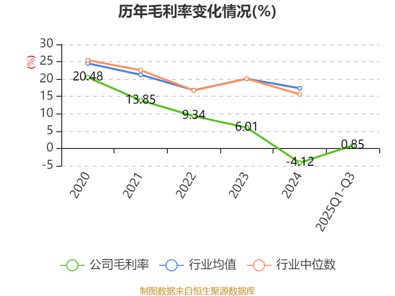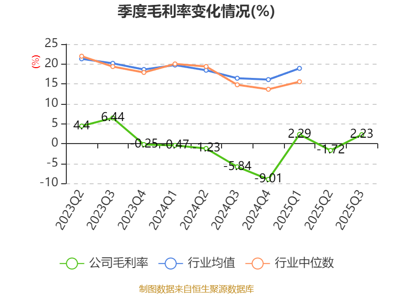 盈利能力方面, 2025年前三季度公司加权平均净资产收益率为-7.76%,同比下降1.07个百分点。公司2025年前三季度投入资本回报率为-3.8%,较上年同期上升0.23个百分点。