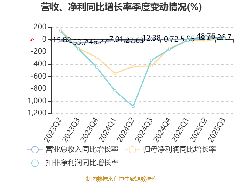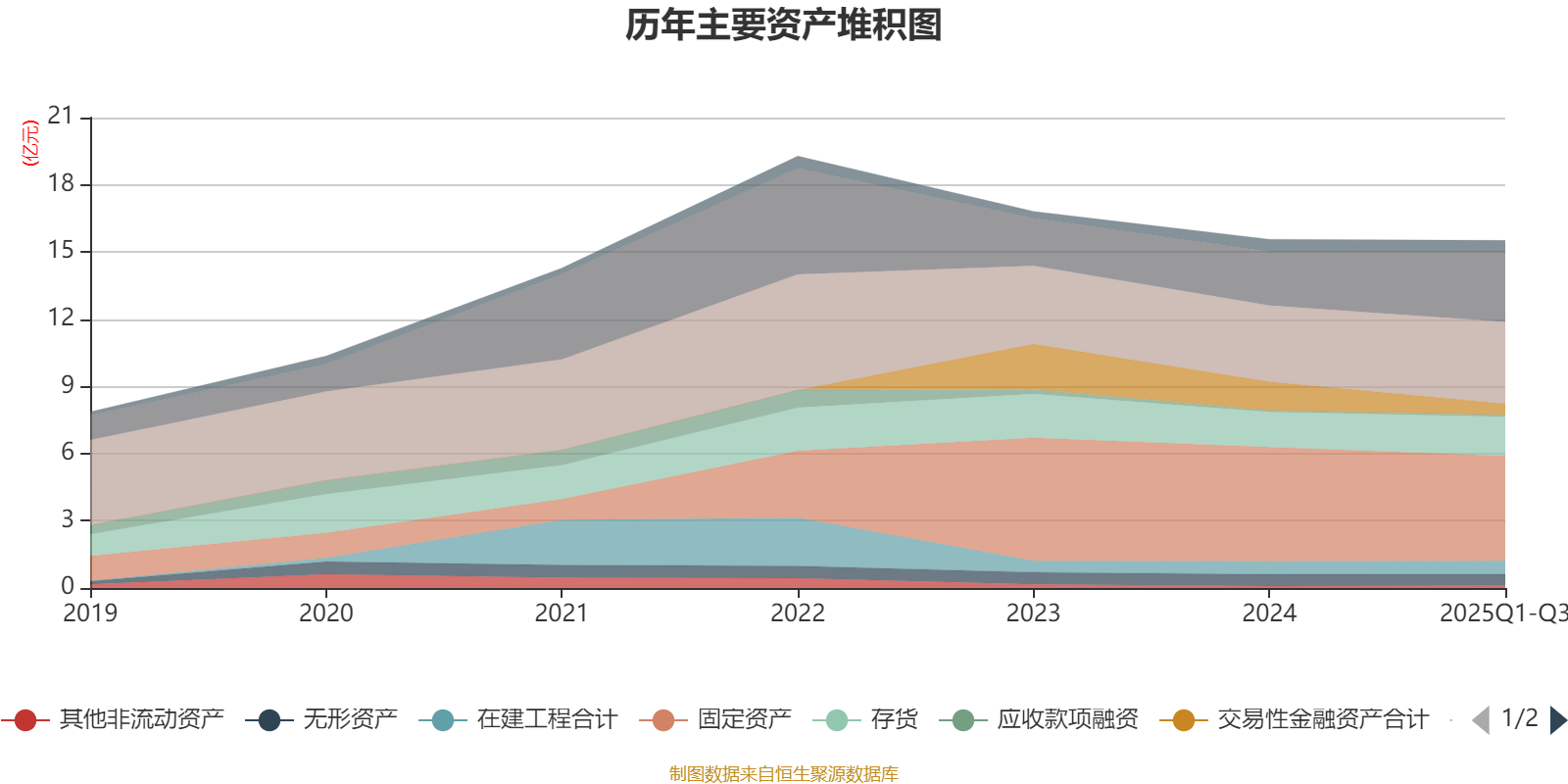 资产重大变化方面,截至2025年三季度末,公司交易性金融资产合计较上年末减少60.94%,占公司总资产比重下降5个百分点;货币资金较上年末增加30.37%,占公司总资产比重上升4.74个百分点;固定资产较上年末减少8.12%,占公司总资产比重下降2.55个百分点;应收票据及应收账款较上年末增加7.19%,占公司总资产比重上升1.65个百分点。