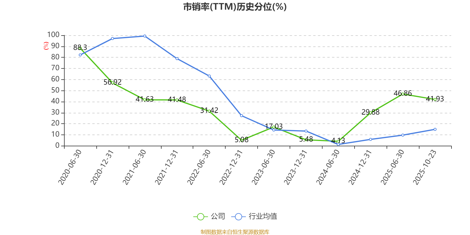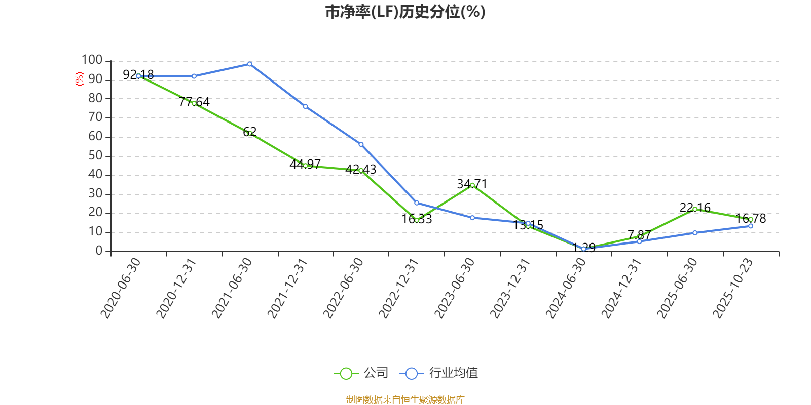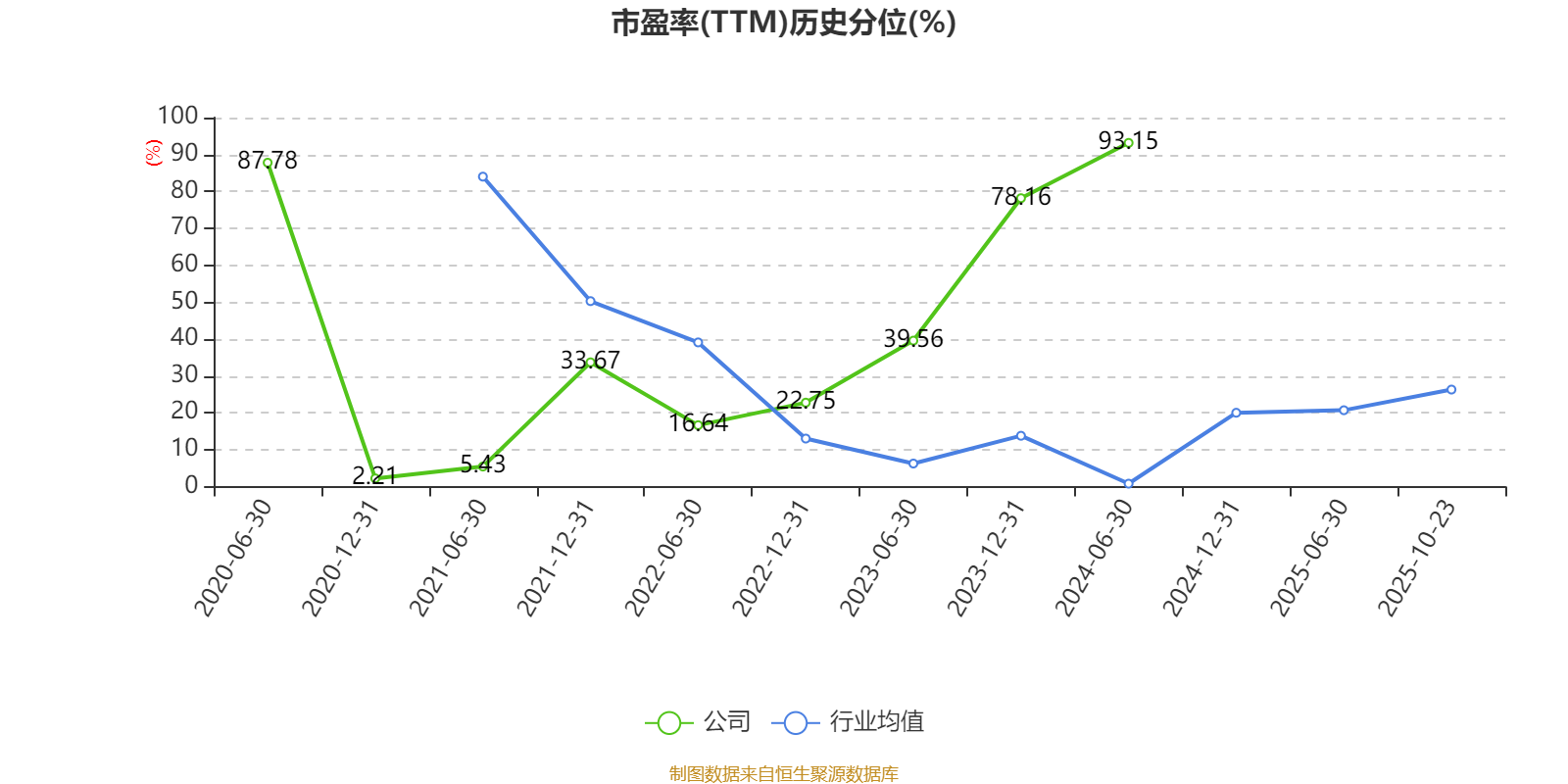 市盈率、市净率为负时,不显示当期分位数,会导致折线图中断。