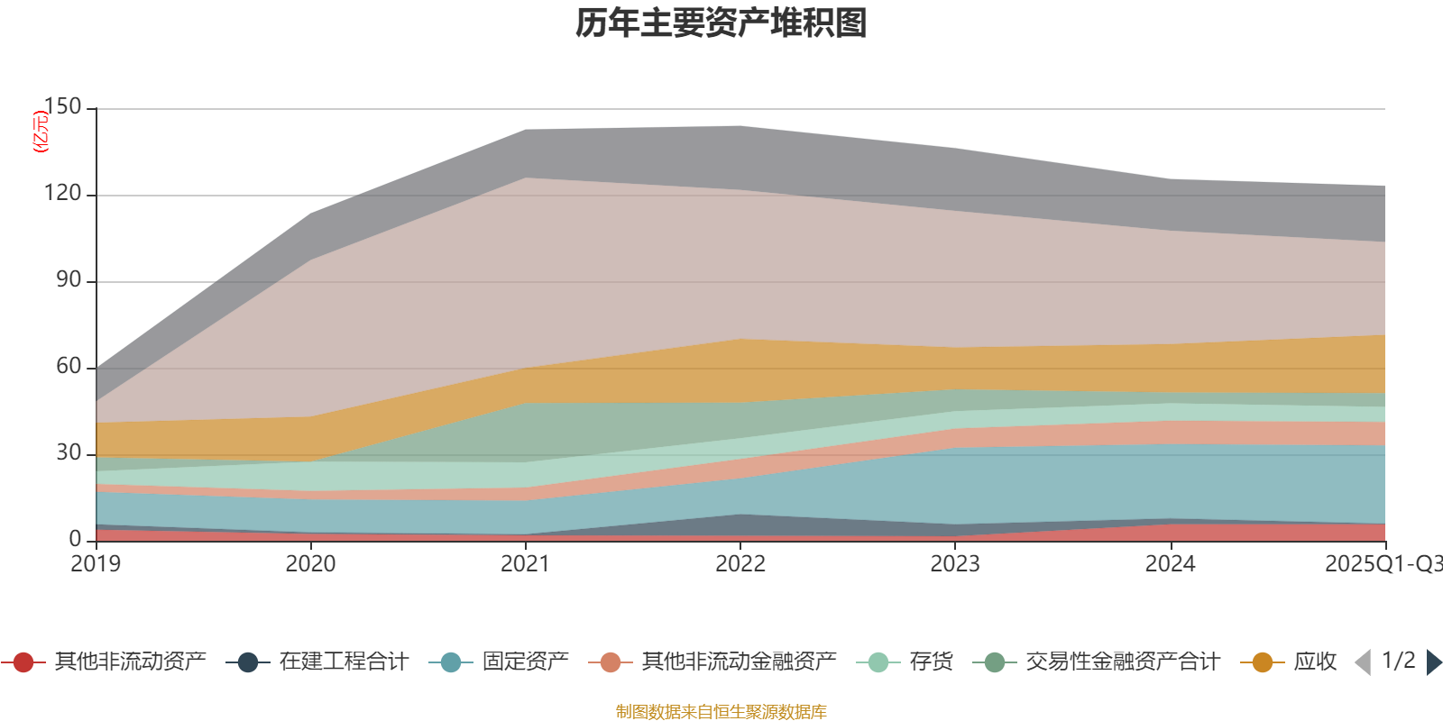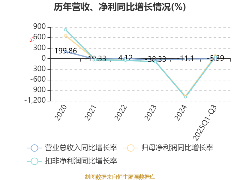 资产重大变化方面,截至2025年三季度末,公司货币资金较上年末减少18.19%,占公司总资产比重下降5.2个百分点;应收票据及应收账款较上年末增加20.37%,占公司总资产比重上升3.04个百分点;固定资产较上年末增加5.04%,占公司总资产比重上升1.46个百分点;在建工程合计较上年末减少87.44%,占公司总资产比重下降1.43个百分点。