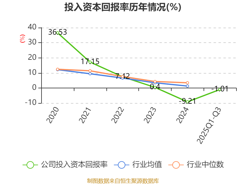 盈利能力方面, 2025年前三季度公司加权平均净资产收益率为-0.23%,同比上升1.03个百分点。公司2025年前三季度投入资本回报率为-1.01%,较上年同期上升0.67个百分点。