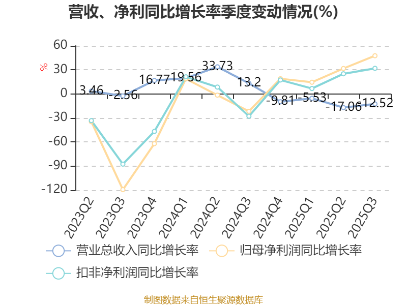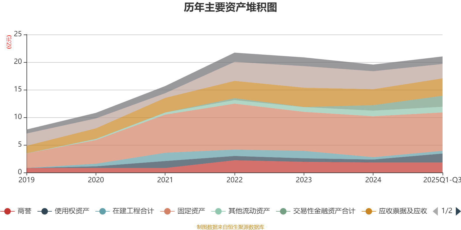 资产重大变化方面,截至2025年三季度末,公司使用权资产较上年末增加202.25%,占公司总资产比重上升4.94个百分点;固定资产较上年末减少6.26%,占公司总资产比重下降4.87个百分点;交易性金融资产合计较上年末增加99.89%,占公司总资产比重上升4.4个百分点;货币资金较上年末减少20.14%,占公司总资产比重下降4.31个百分点。