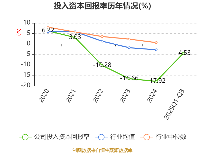 盈利能力方面, 2025年前三季度公司加权平均净资产收益率为-11.16%,同比上升2.58个百分点。公司2025年前三季度投入资本回报率为-4.53%,较上年同期上升2.95个百分点。
