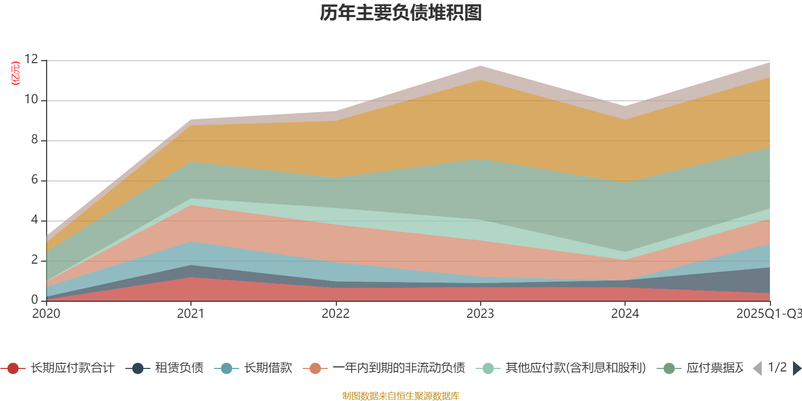 负债重大变化方面,截至2025年三季度末,公司长期借款占公司总资产的5.64%,上年末为0;租赁负债较上年末增加256.06%,占公司总资产比重上升4.26个百分点;应付票据及应付账款较上年末减少11.46%,占公司总资产比重下降3.11个百分点;长期应付款合计较上年末减少42.75%,占公司总资产比重下降1.58个百分点。