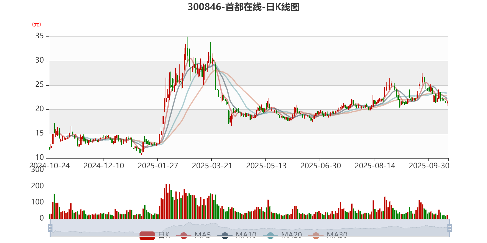 中证智能财讯首都在线(300846)10月24日披露2025年第三季度报告。前三季度公司实现营业总收入9.26亿元,同比下降12.05%;归母净利润亏损9941.3万元,上年同期亏损1.46亿元;扣非净利润亏损1.16亿元,上年同期亏损1.49亿元;经营活动产生的现金流量净额为8741.56万元,同比下降49.77%;报告期内,首都在线基本每股收益为-0.1983元,加权平均净资产收益率为-11.16%。