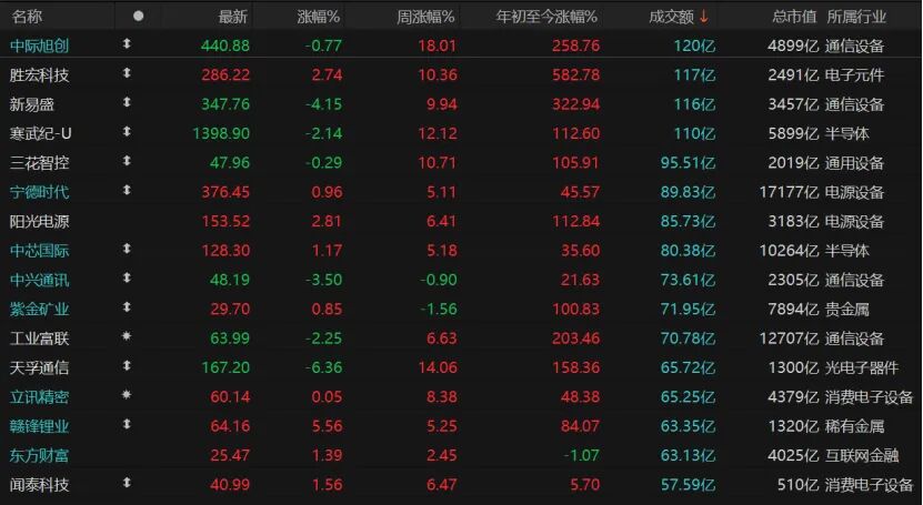 A股市场个股涨跌互现。其中,共有2994只个股收涨,涨停股72只;2302只个股收跌,跌停股9只。在CPO概念板块中,“易中天”三只个股出现回调,中际旭创收跌0.77%、新易盛收跌4.15%、天孚通信收跌6.36%。此外,寒武纪-U收跌2.14%,报1398.9元/股;三花智控收跌0.29%,报47.96元/股;宁德时代、阳光电源则收红。