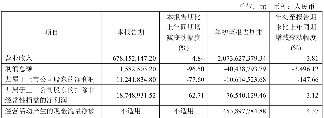 其中,第三季度实现营收6.78亿元,同比下降4.84%;归母净利润1124.18万元,同比下降77.60%。
