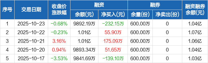 芯片ETF龙头:融资净偿还232.15万元,融资余额9892.19万元(10-23)